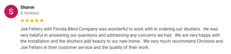 Christine is the brain behind the business. She has experience in marketing and design making the launch of Florida Blind Company a fun project.