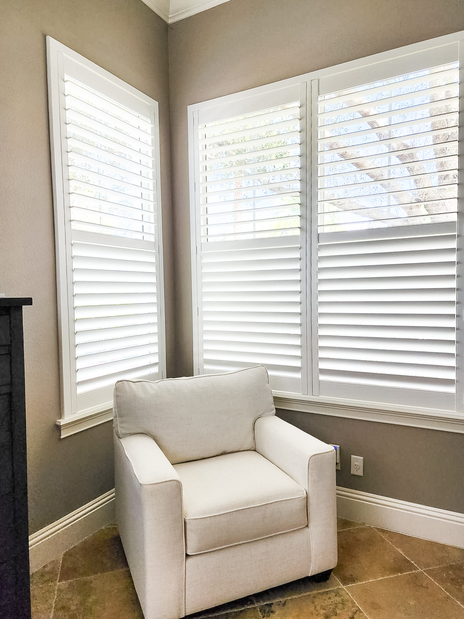 Eclipse Shutters- 3.5 inch louver, tilt rod, divider rails, deluxe trim frame,