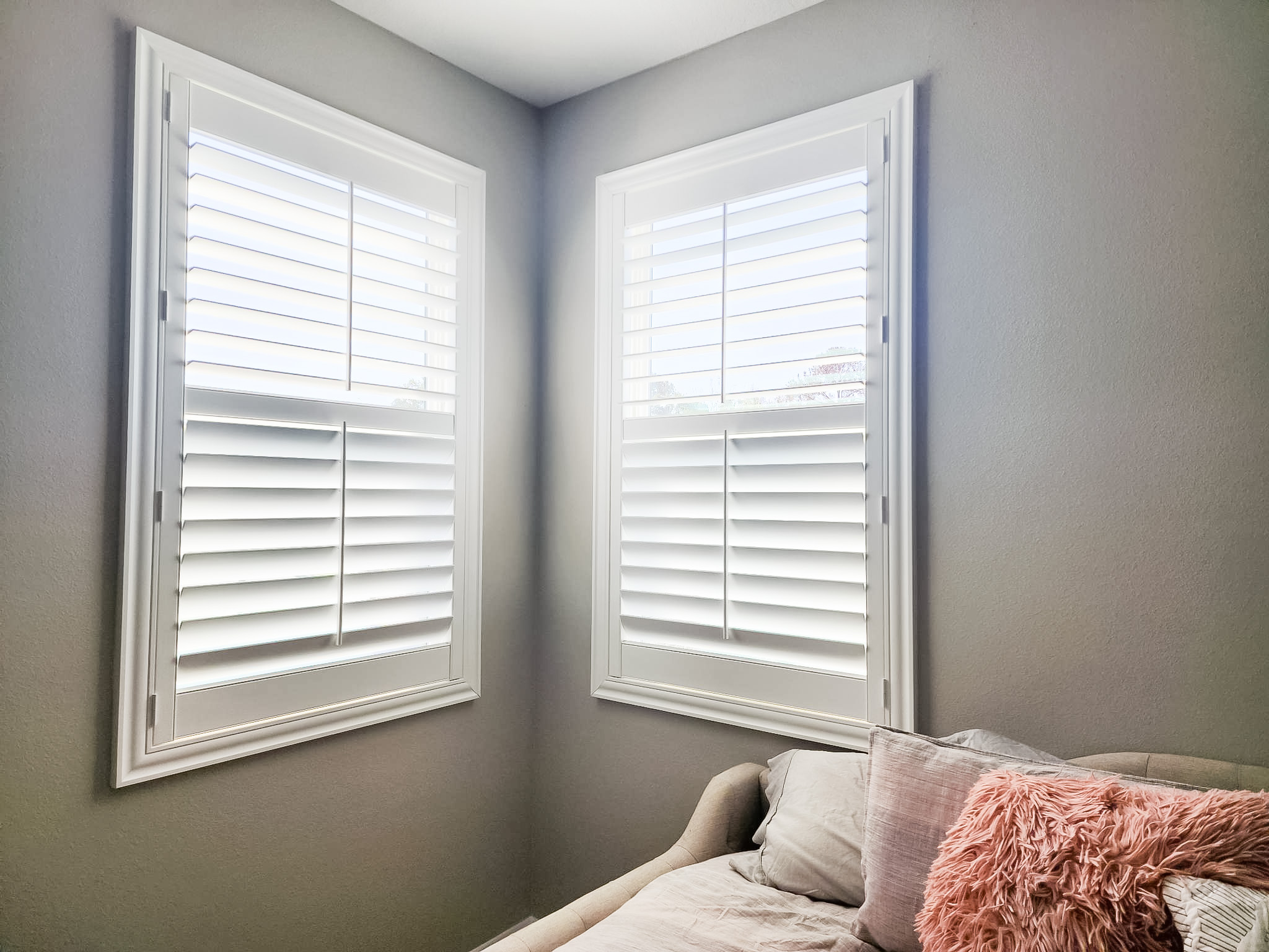 Mirasol Shutters, Hidden Tilt, Small Z frame, 3.5 inch louvers.